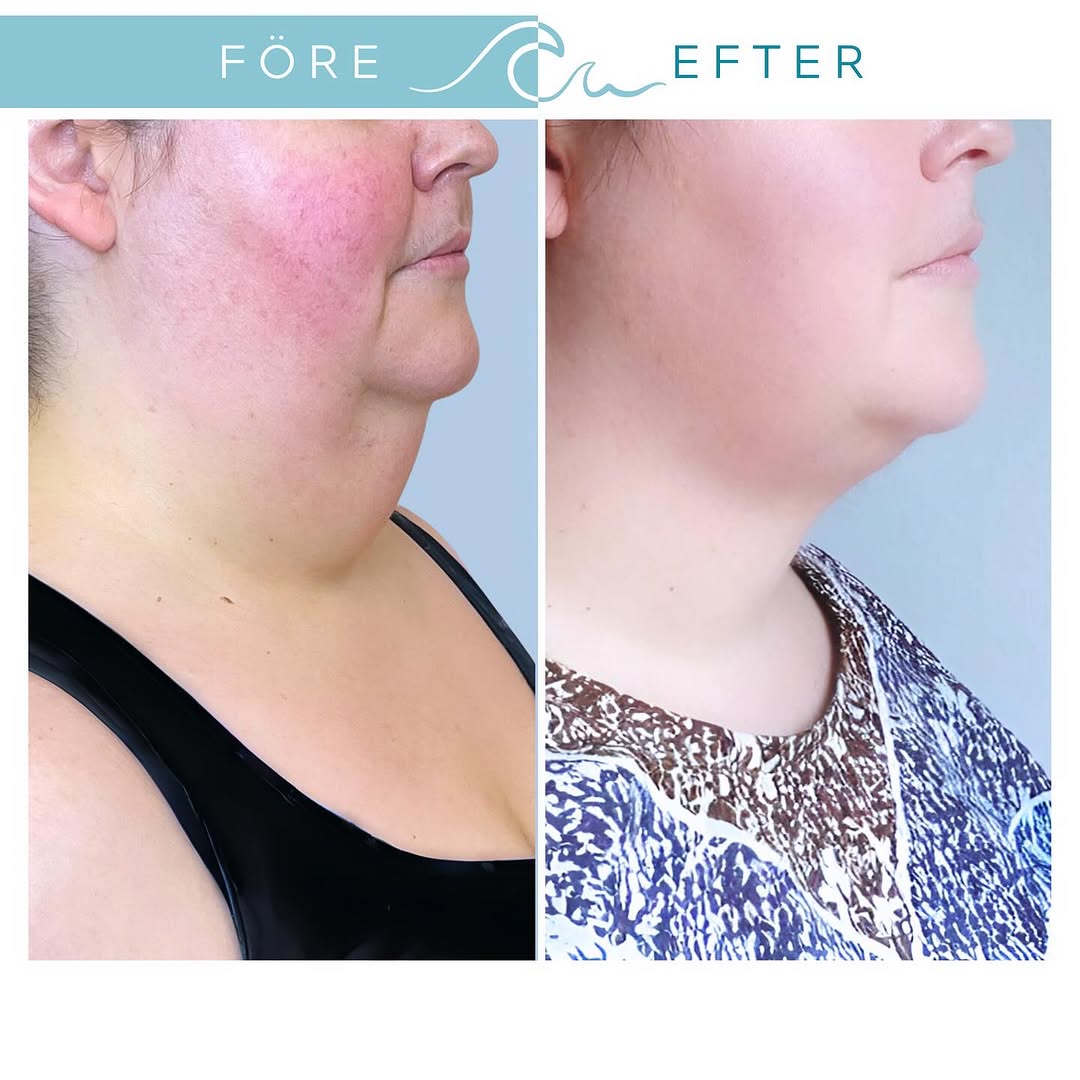 Behandlingen utförs under lokalbedövning och tar cirka två timmar. Själva ingreppet är smidigt och effektivt: Lokalbedövning placeras för att minimera obehag. Små snitt görs för att avlägsna fettceller med hjälp av en fettsugningskanyl. Ett trådlyft används för att strama åt huden och förstärka käklinjen. Resultatet är omedelbart synligt, och de borttagna fettcellerna återbildas inte, vilket gör resultatet permanent.