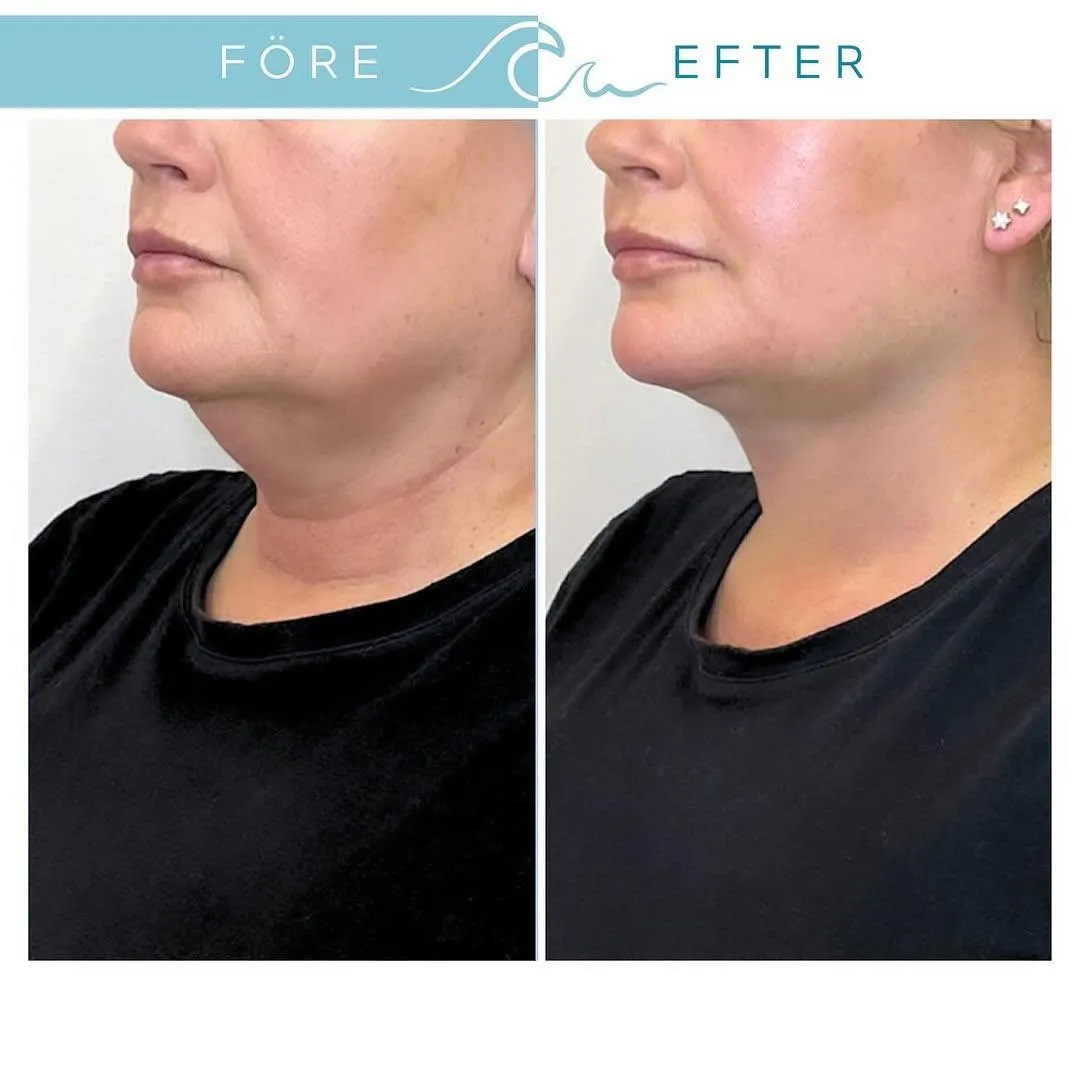 Behandlingen tar bort överskottsfett under hakan och stramar åt huden, vilket ger ett ungdomligt och definierat utseende. Denna unika metod är inspirerad av tekniker från Korea och Ryssland och har anpassats för att leverera bästa möjliga resultat.